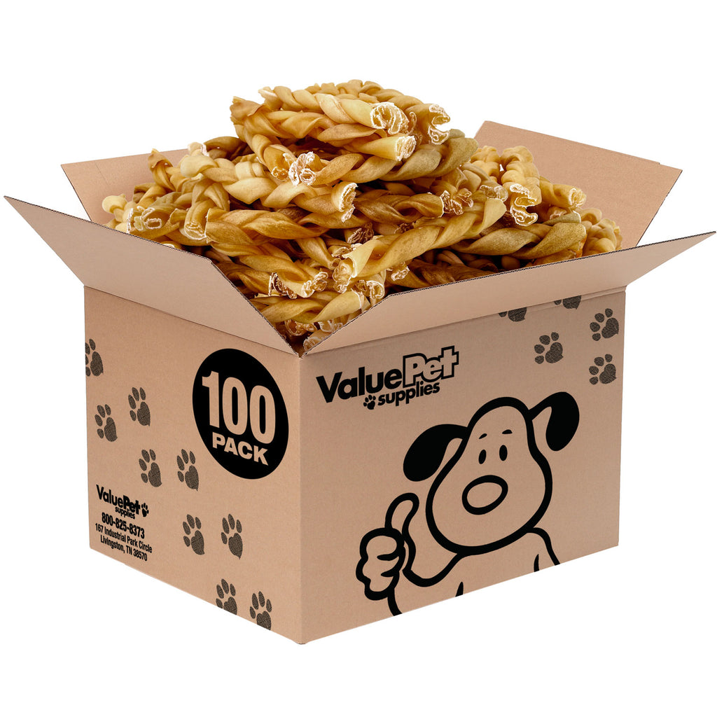 ValueBull Buffalo Collagen Braided Sticks for Dogs, 6 Inch Medium Chews, Natural Long-Lasting Dog Treats, 100 Count Bulk Pack - Supports Joints, Skin & Coat with Chondroitin & Glucosamine
