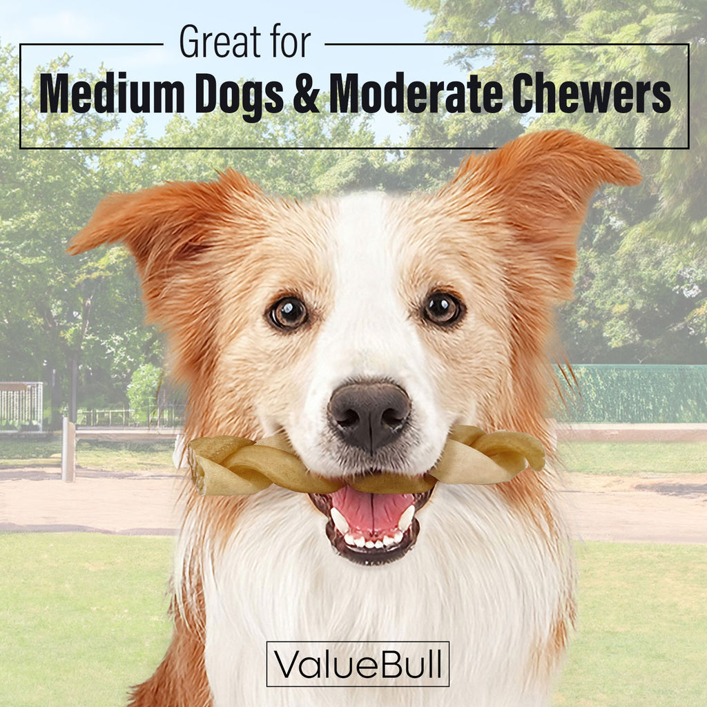 ValueBull Buffalo Collagen Braided Sticks for Dogs, 6 Inch Medium Chews, Natural Long-Lasting Dog Treats, 50 Count Bulk Pack - Supports Joints, Skin & Coat with Chondroitin & Glucosamine
