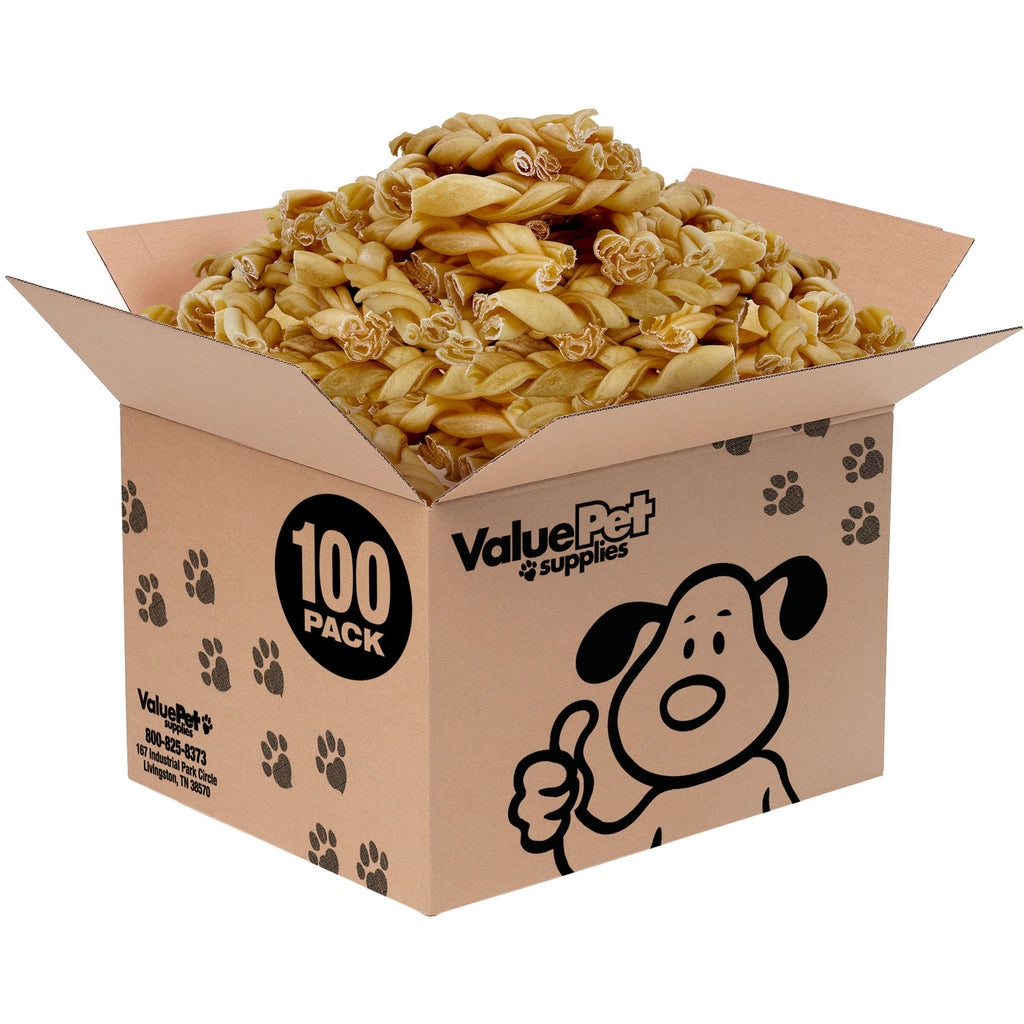 ValueBull Buffalo Collagen Braided Sticks for Large Dogs, 6 Inch Thick Chews, Natural Long-Lasting Dog Treats, 100 Count Bulk Pack - Supports Joints, Skin & Coat with Chondroitin & Glucosamine