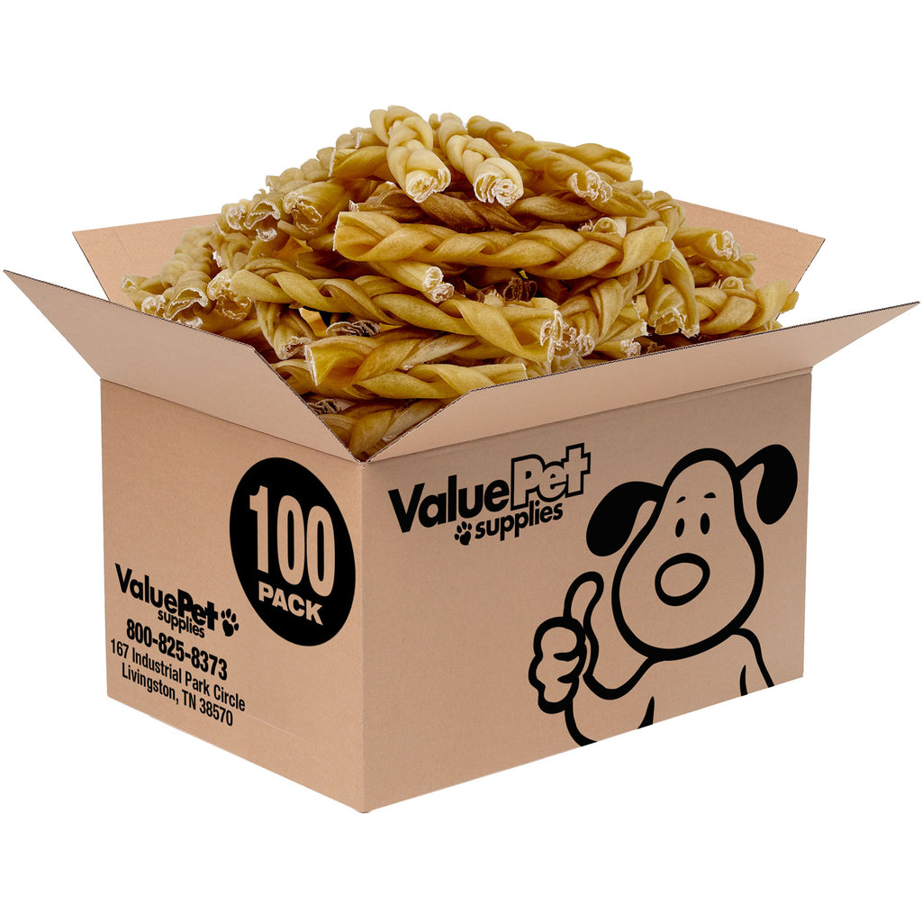 ValueBull Buffalo Collagen Braided Sticks for Small Dogs, 6 Inch Thin Chews, Natural Dog Treats, 100 Count Bulk Pack - Supports Joints, Skin & Coat with Chondroitin & Glucosamine