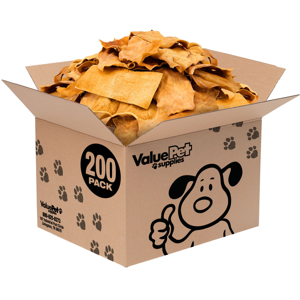 ValueBull USA Chicken Flavored Beef Collagen Chips are made from a single sheet of corium, the inner layer of beef skin rich in collagen. Collagen helps your dog in many ways: it cleans their teeth and strengthens their jaw muscles, it rebuilds and repairs their muscles, it reduces inflammation, it supports their bones and joints, and it improves their skin and coat. These treats are long-lasting, basted in beefy broth, and highly digestible. We hand inspect all-natural treats for quality and consistency; some natural variation is to be expected. Quantity is estimated based on average weight.