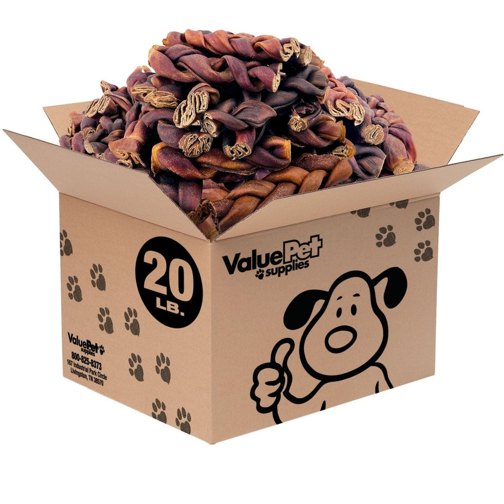 ValueBull USA 6 Inch Jumbo Beef Collagen Braids are the real deal. Crafted from a single sheet of the inner, collagen-rich layer of beef skin known as corium, Collagen brings benefits to nearly every part of your beloved pup. It starts with the gentle and natural dental and jaw muscle benefits of chewing a durable treat. From there, the highly digestible collagen is quickly converted into essential amino acids that help rebuild and repair your dog's muscles, reduce inflammation throughout the body, strengthen bones and joints, and even moisten and shine your dog's skin and coat so they can look as good as they feel. Like our famous bully sticks, healthy collagen beef sticks are a long lasting chew, basted in beefy broth for a flavor and aroma your dog will crave.