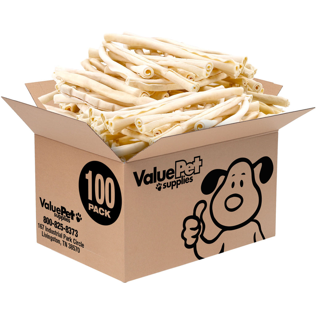Dogs want to chew. It's instinct, it's a hobby and they love it. Ideal for small dogs, ValueBull Rawhide Retriever Rolls, 10-Inch Thin will let you support your dog's jaw-some pastime without sacrificing beloved tables or footwear. Our rolled rawhide dog treats offer your best friend an intriguing puzzle of satisfying texture and flavor that effortlessly cleans teeth and stimulates gums to combat doggie breath.